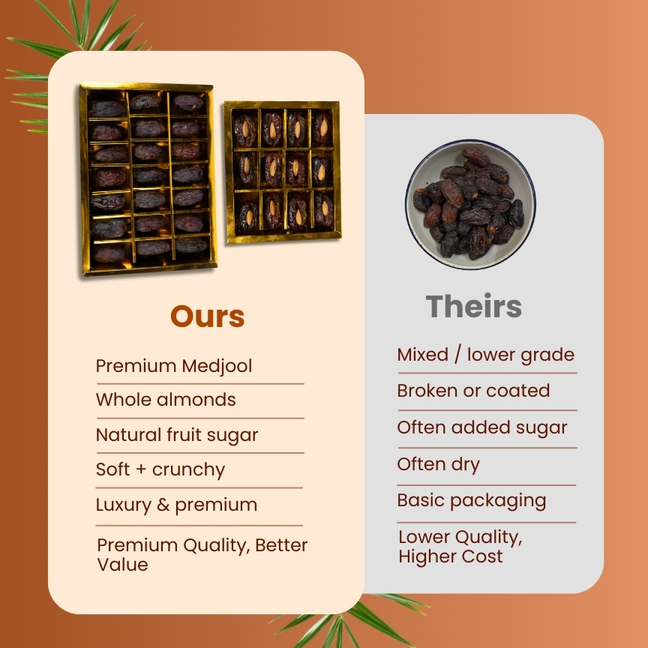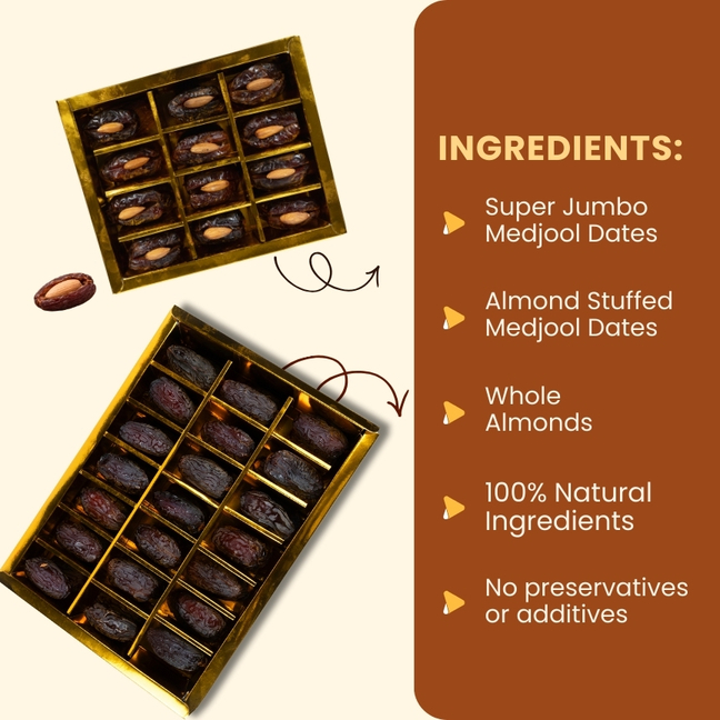 Each date is handpicked and stuffed with whole crunchy almonds, offering a perfect balance of soft sweetness and nutty texture. Free from added sugar, oil, or preservatives, this combo is ideal for health-conscious buyers, festive gifting, and premium occasions.